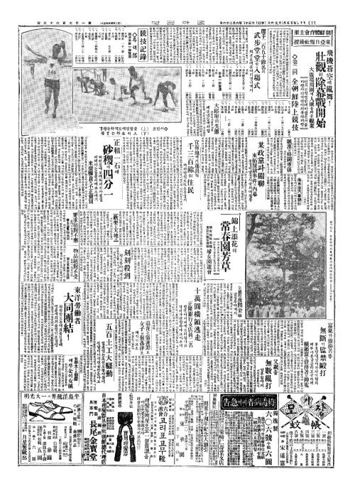 - 朝鮮體育會主催(조선체육회주최) 東亞日報社後援(동아일보사후원) 飛機蒼空(비기창공)에亂舞(난무)! 壯觀(장관)의除幕戰開始(제막전개시) 大廣塲周圍(대광장주위)에人城(인성)을싸은觀衆(관중)