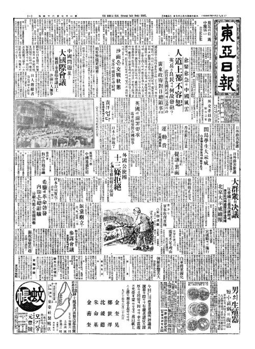 - 領事團抗議(영사단항의)를卽刻拒絕(즉각거절) 廣東政府總攻擊開始(광동정부총공격개시)