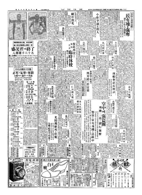 - 朝鮮體育會主催(조선체육회주최)、本社後援(본사후원) 第二回全朝鮮陸上竸技大會(제이회전조선륙상경기대회) 盛况裡(성황리)에終了(종요) 入選選手六十名(입선선수륙십명)