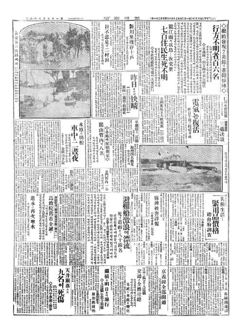 - 本社記者(본사기자)가齎來(재래)한南道水害(남도수해)의種(종)々(一(일))鳥致院舊市全滅(조치원구시전멸)?