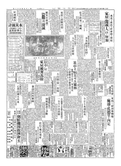 - 水災(수재)가產出(산출)한社會相(사회상)의種種(종종) 家屋(가옥)은激减(격감)·人口(인구)는增加(증가)