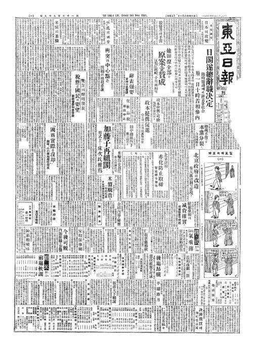 - 本報朝夕刊發行(본보조석간발행)에臨(임)하야