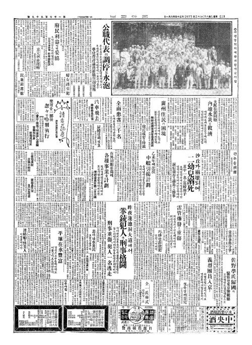 - 大阪在留同胞(대판재유동포) 內地水災(내지수재)를救濟(구제)