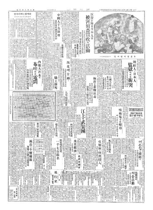 - 內地大洪水(내지대홍수)에 布哇(포와)에서電問(전문)