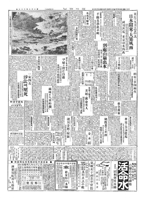 - 災厄(재액)의九月(구월)을압두고 日本關東(일본관동)에大暴風雨(대폭풍우)
