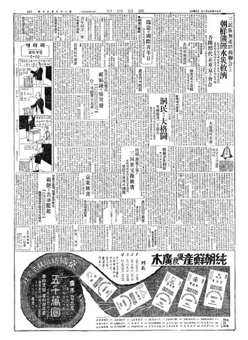 - 三民族無產階級聯合(삼민족무산계급련합)으로 朝鮮饑饉水災救濟(조선기근수재구제)