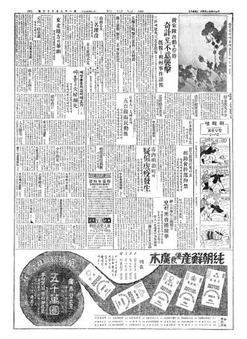- 仁川(인천)의屠殺數(도살삭) 八月中四百頭(팔월중사백두)