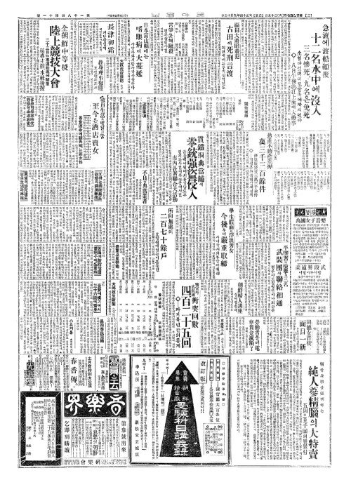 - 急流(급류)에渡船顚覆(도선전복) 十二名水中(십이명수중)에沒入(몰입)