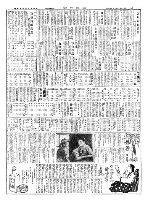 - 七月金融及經濟(칠월김융급경제) 米及大豆(미급대두)는奔騰(분등)、粟(속)은軟調(연조)