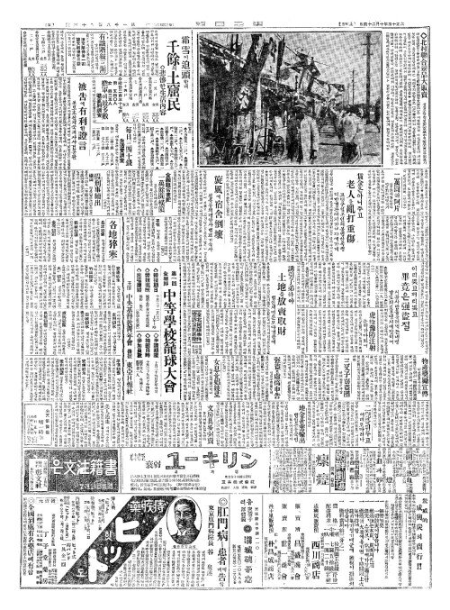 - 旋風(선풍)에宿舍倒壞(숙사도괴) 신츅즁의평양사범교기숙사