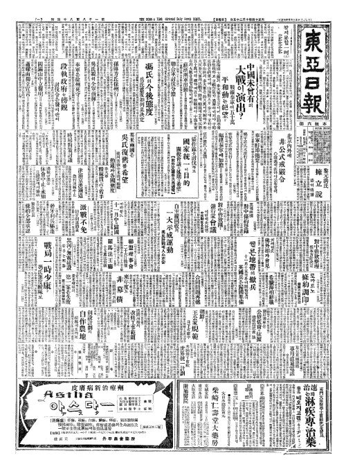 - 段執政府(단집정부)는傍觀(방관) 討伐令(토벌영)은發(발)치안어