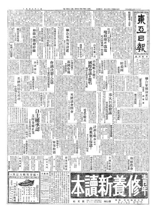 - 時局(시국)의一段落(일단낙)과 現政府(현정부)의改造(개조)