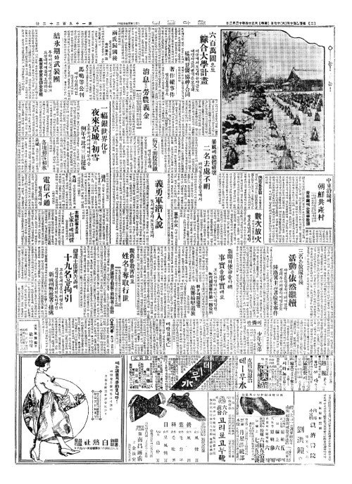 - 一幅銀世界化(일폭은세계화)한 夜來京城(야내경성)의初雪(초설)