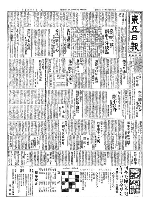 - 奉天城(봉천성)이危險(위험)허자 警務當局(경무당국)이大緊張(대긴장)