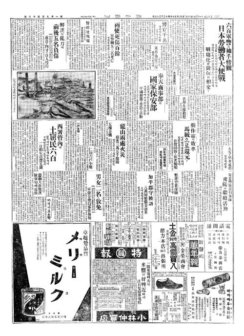 - 六百軍警(륙백군경)로袖手傍觀(수수방관) 日本勞働者大便戰(일본로동자대편전)