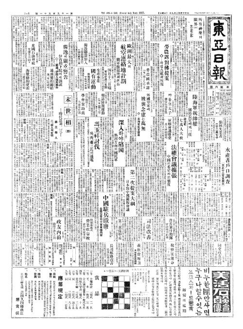 - 英銀國有法案(영은국유법안) 第一讀會(제일독회)에提出(제출)