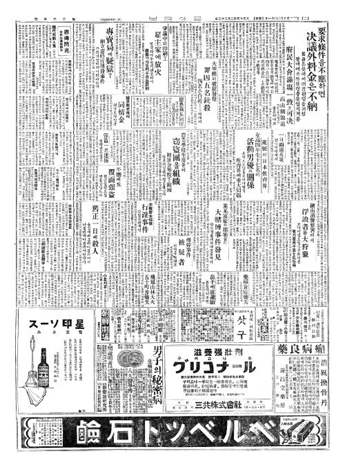 - 爭議中(쟁의중)의印刷工(인쇄공) 雇主家(고주가)에放火(방화)