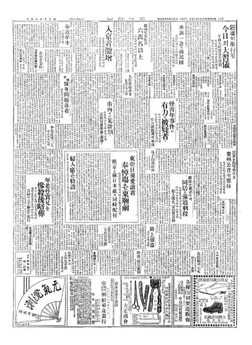 - 東亞日報愛讀者(동아일보애두자) 奉悼塲(봉도장)은東廟前(동묘전)