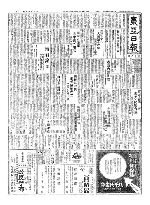 - 北滿地方旱魃(배만지방한발) 민심이소동되는중