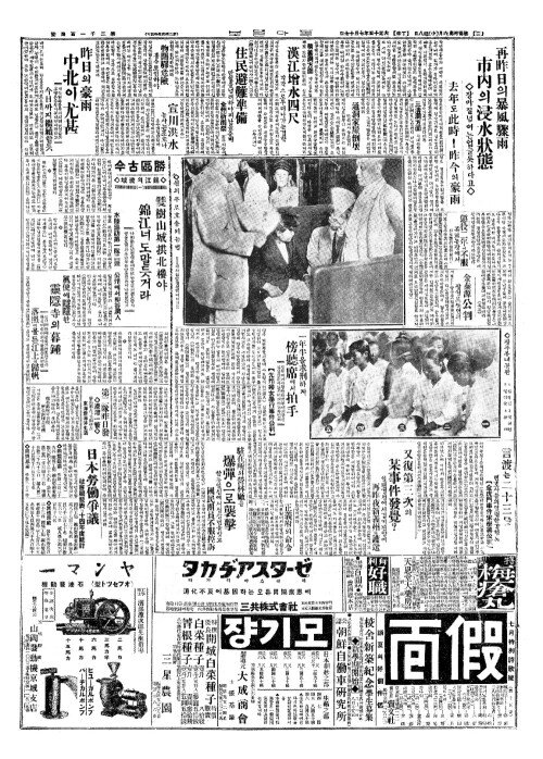 - 再昨日(재작일)의暴風驟雨(폭풍취우) 市內(시내)의浸水狀態(침수상태) ◇장마질념여는업슬듯하다고◇ 去年(거년)도此時(차시)!昨今(작금)의豪雨(호우)