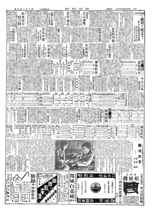 - 兩取合併破裂(양취합병파열)?成立(성입)?昨日仁取重役會再開(작일인취중역회재개)