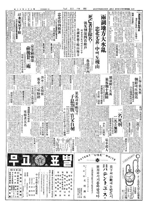 - 浸水家屋千餘(침수가옥천여) ◇卄三日當局着電忠南被害(입삼일당국저전충남피해)