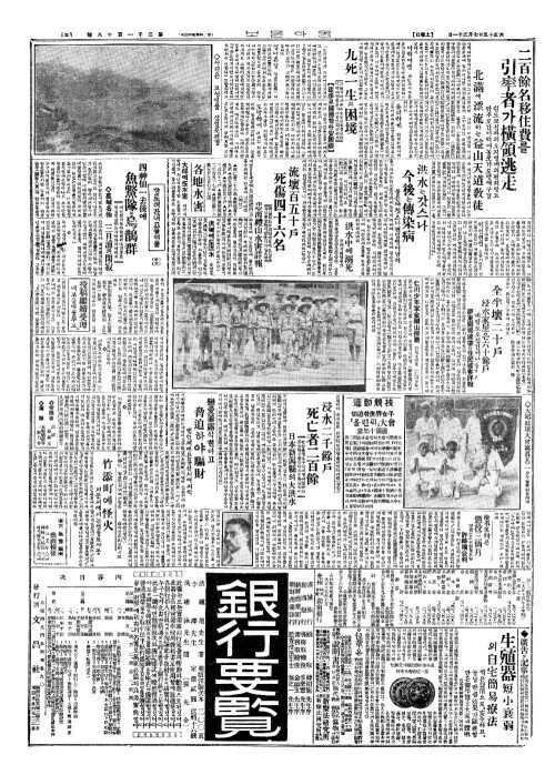 - 浸水二千餘戶(침수이천여호) 死亡者二百餘(사망자이백여)