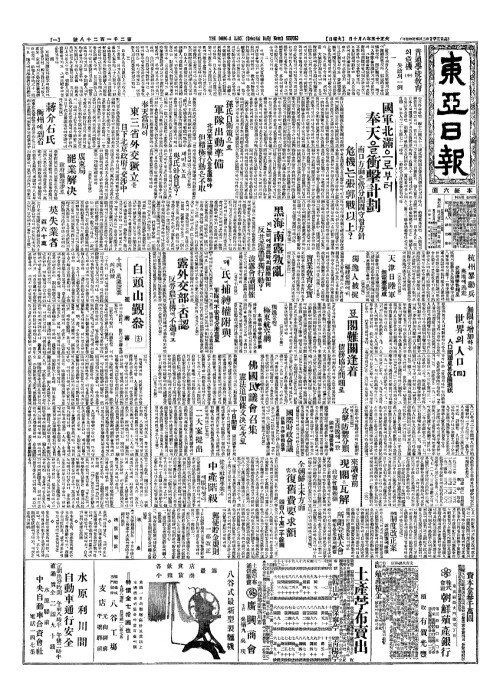 - 奉天當局(봉천당국)이 東三省外交獗立(동삼성외교궐입)을