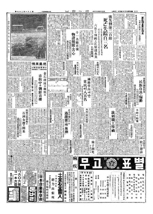 - 流失倒壞二百餘(류실도괴이백여) 死亡失踪百三名(사망실종백삼명)