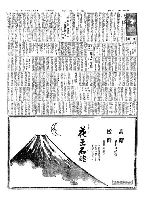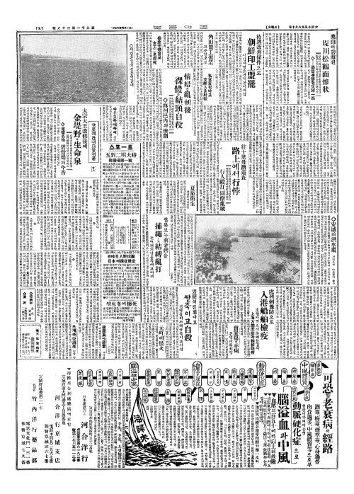 - 郵船艀船遭難(우선부선조난) 船員船客無事(선원선객무사) 損害(손해)는約千餘圓(약천여원)
