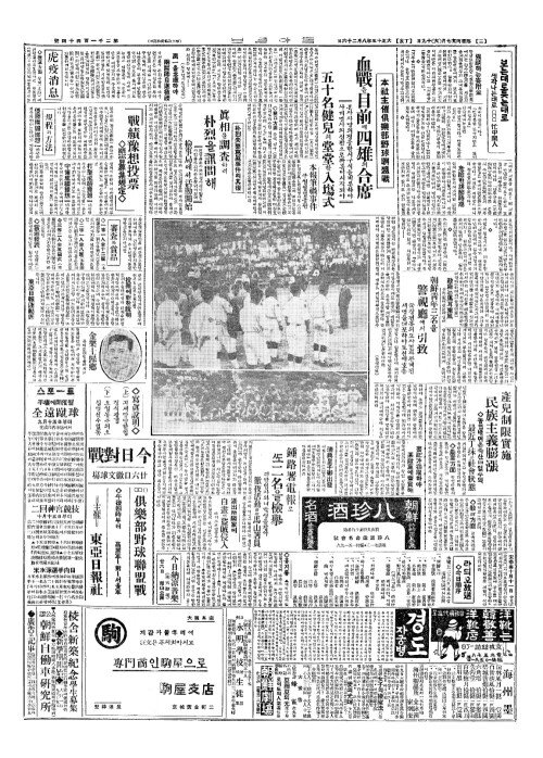 - 本社主催俱樂部野球聯盟戰(본사주최구락부야구연맹전) 血戰(혈전)을目前(목전)에四雄(사웅)의合席(합석)