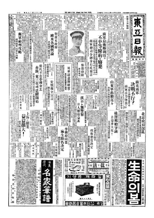 - 山東軍出動遲(산동군출동지)々 奉派(봉파)의消極的態度(소극적태탁)로
