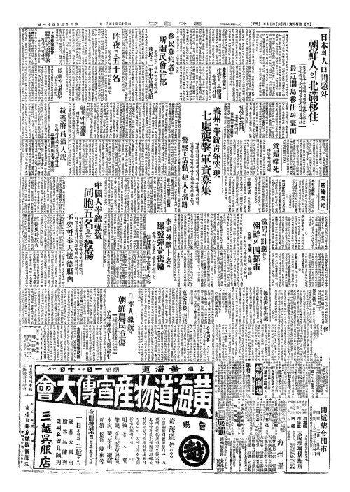 - 義州(의주)에拳銃靑年突現(권총청년돌현) 七處襲擊(칠처습격)、軍資募集(군자모집)