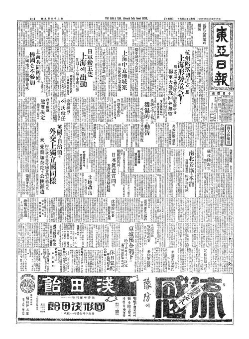 - 日軍艦五隻(일군함오척) 上海(상해)에出動(출동)