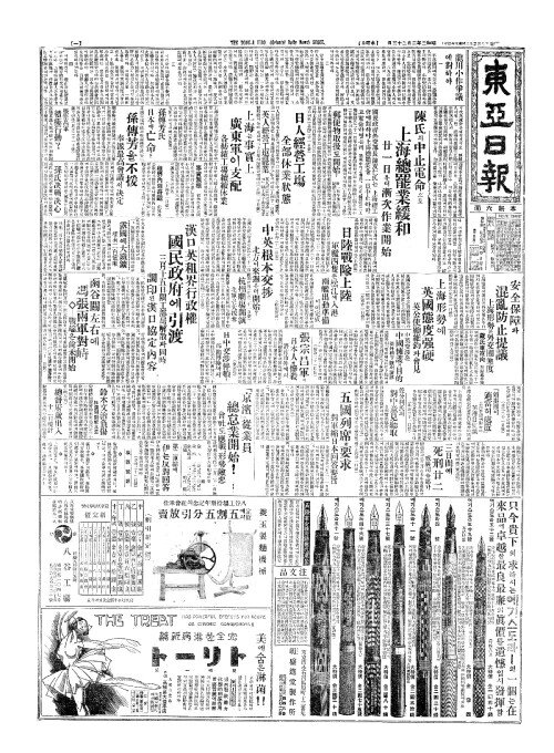 - 上海形勢(상해형세)에 英國態度强硬(영국태도강경)