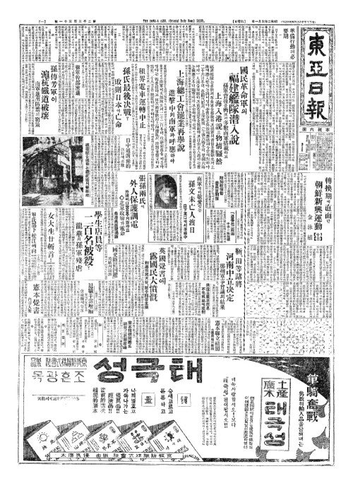 - 上海總工會罷業再擧說(상해총공회파업재거설) 進擊中(진격중)의南軍(남군)과呼應(호응)하야