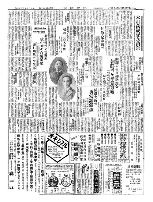 - 本社新築落成紀念(본사신축낙성기념) 卅日前後(삽일전후)하야各地一齊(각지일제)히