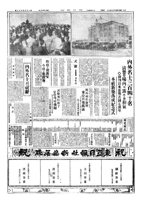 - 潑溂(발자)한各地(각지)의活動(활동) 本社落成紀念消息(본사낙성기념소식)