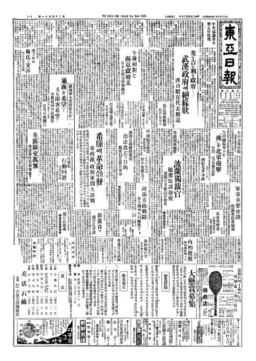 - 希臘(희랍)에革命勃發(혁명발발) 帝政派(제정파)、政府軍間大激戰(정부군간대격전)