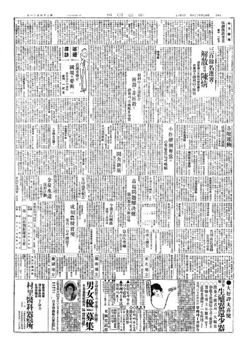 - 三百餘名連署(삼백여명연서)로 解散(해산)코저陳情(진정)