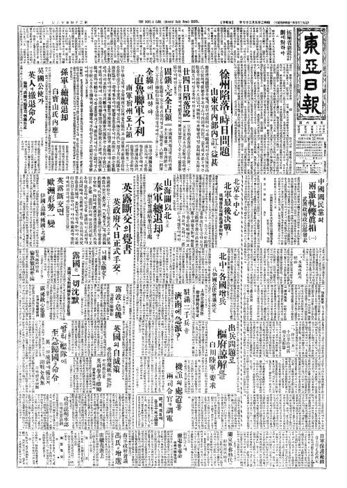 - 居留日人(거류일인)에 撤退(철퇴)를電命(전명) 徐州(서주)가陷落(함락)되면