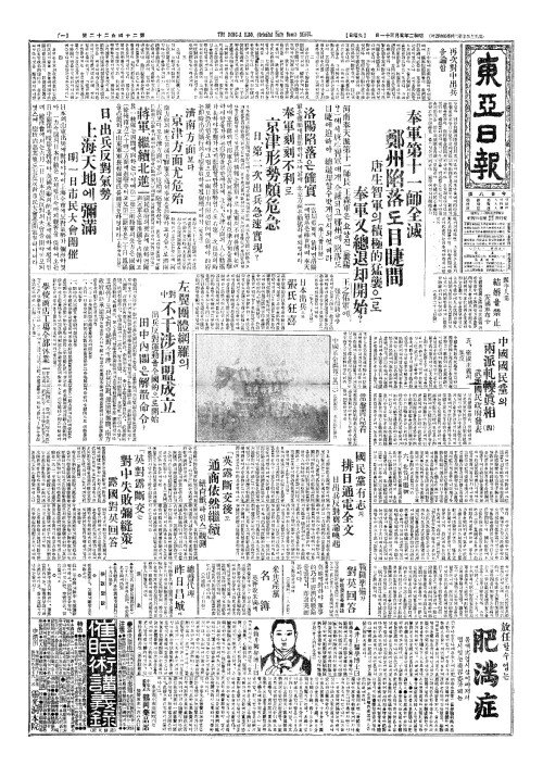 - 奉軍第十一師全滅(봉군제십일사전멸) 鄭州陷落(정주함락)도目睫間(목첩간)