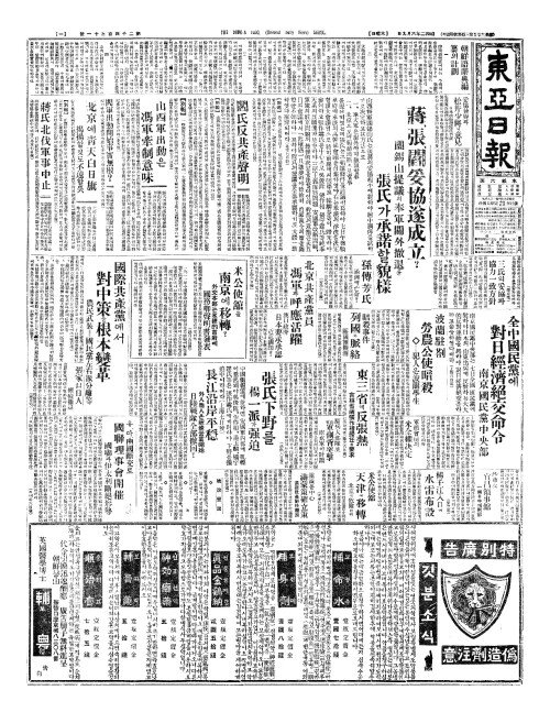 - 蔣(장)、張(장)、閻妥協遂成立(염타협수성립)? ?錫山提議(석산제의)의奉軍關外撤退(봉군관외철퇴)를
