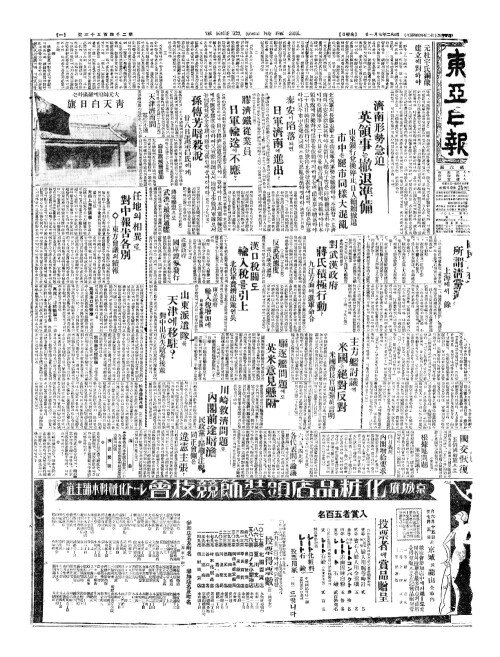 - 濟南形勢急迫(제남형세급박) 英領事(영영사)는撤退凖備(철퇴준비)
