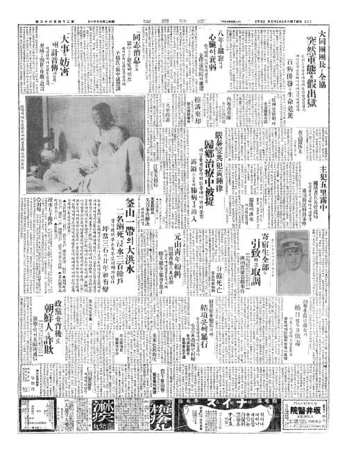 - 釜山一帶(부산일대)의大洪水(대홍수) 二名溺死(이명닉사)、浸水三百餘戶(침수삼백여호)