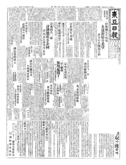- 軍縮會議績報(군축회의적보) 一日(일일)의總會(총회) 無期延期(무기연기)!