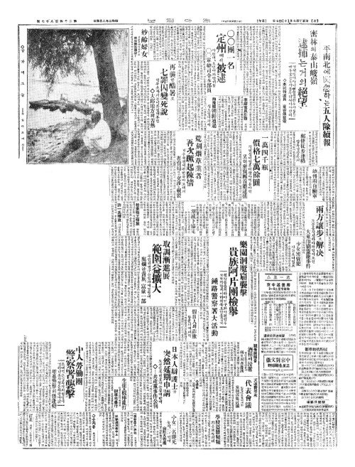 - 平南北(평남배)에閃忽(섬홀)하는五人隊續報(오인대속보) 密林(밀림)의泰山峻嶺(태산준령) 逮捕(체포)는거의絕望(절망)