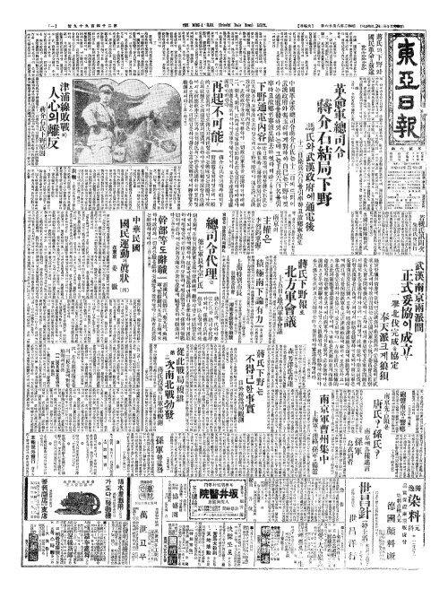 - 武漢(무한)、南京兩派間(남경량파간) 正式妥協(정식타협)이成立(성립)?