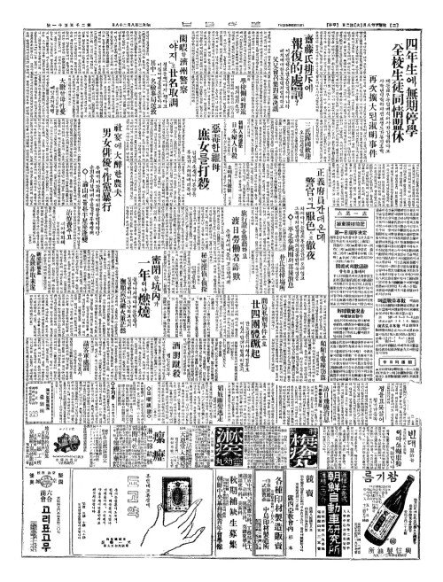 - 四年生(사년생)에無期停學(무기정학) 全校生徒同情盟休(전교생도동정맹휴)
