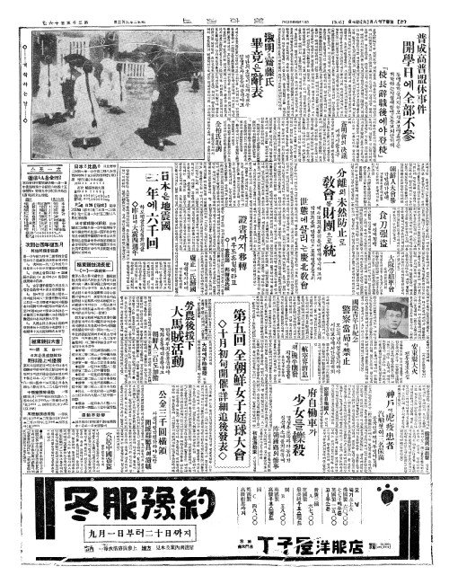 - 普成高普盟休事件(보성고보맹휴사건) 開學日(개학일)에全部不參(전부부삼)